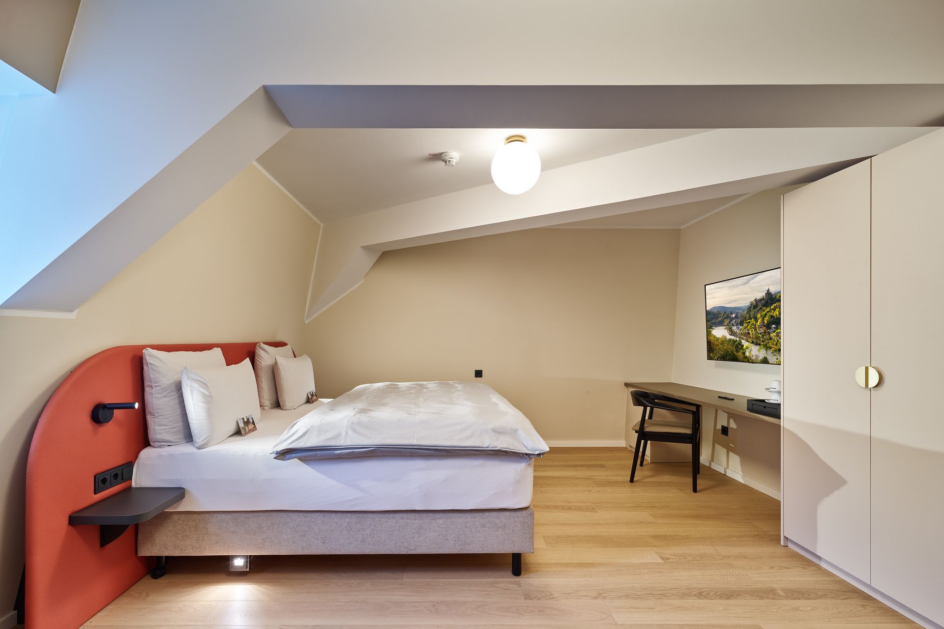 Dank leichter Dachschrägen sind unsere Comfort-Plus Zimmer besonders gemütlich und wohnlich.